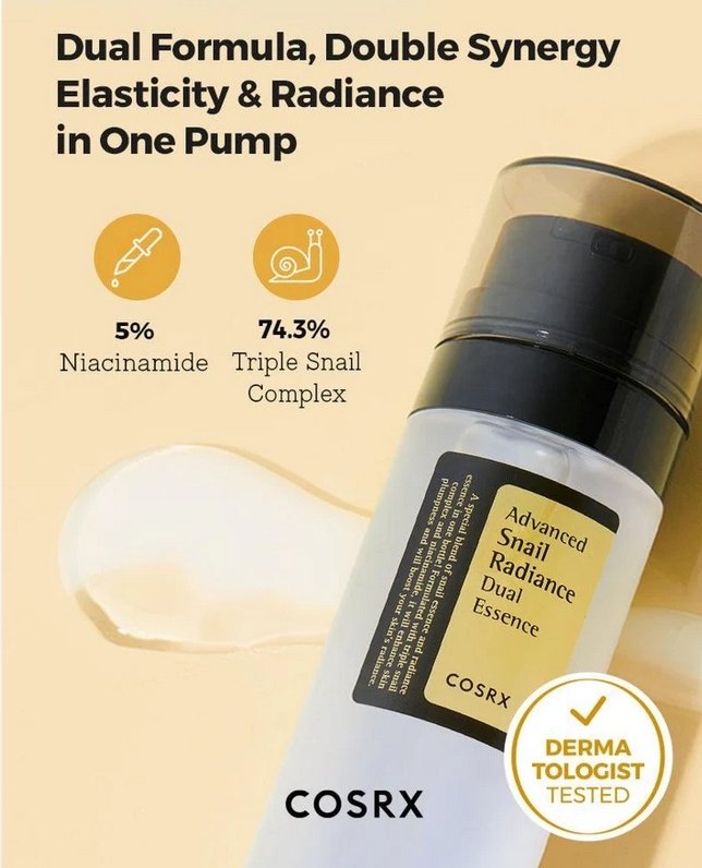 تحويل روتين العناية بالبشرة الخاص بك مع COSRX Advanced Snail Radiance Essence Dual Essence. يجمع هذا المنتج المبتكر بين قوة مرشح الحلزون والنياسيناميد في صيغة مزدوجة الحركة توفر فوائد فورية ودائمة. يمتص الجوهر الخفيف والترطيب بسرعة ، مما يوفر بشرتك طفرة من الرطوبة والإحساس المنعش. في هذه الأثناء ، يغذي الجوهر الكريمي الجلد ، ويعزز توهجه الطبيعي وإشراقه. مع إفراز الحلزون الغني المليء بالبروتينات والأحماض الجليكوليك والإيلاستين ، لا ينعش هذا الجوهر فقط بشرتك ولكنه يساعد أيضًا على تقليل رؤية الخطوط الدقيقة والتجاعيد. مناسبة لجميع أنواع البشرة ، هذا الجوهر المزدوج هو الحل الخاص بك لتحقيق بشرة مشعة وشبابية بشكل واضح.