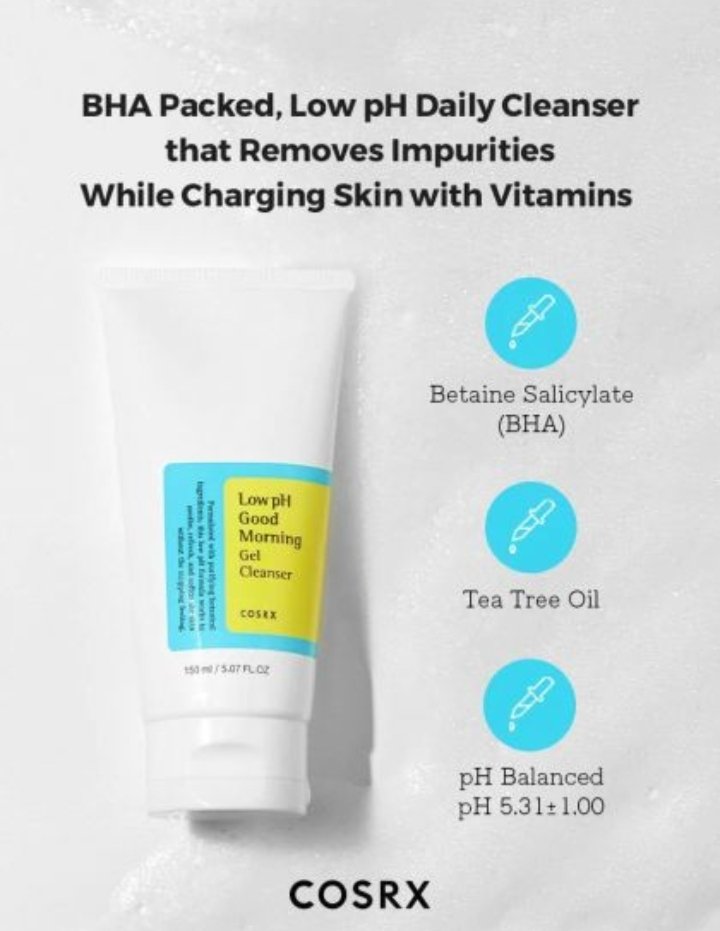 ابدأ يومك بوضوح منعش! يعد CoSRX LOW GOOD MORNOM GEL CLEATHER مثاليًا لتحقيق ملمس جلدي أكثر سلاسة وصحة.