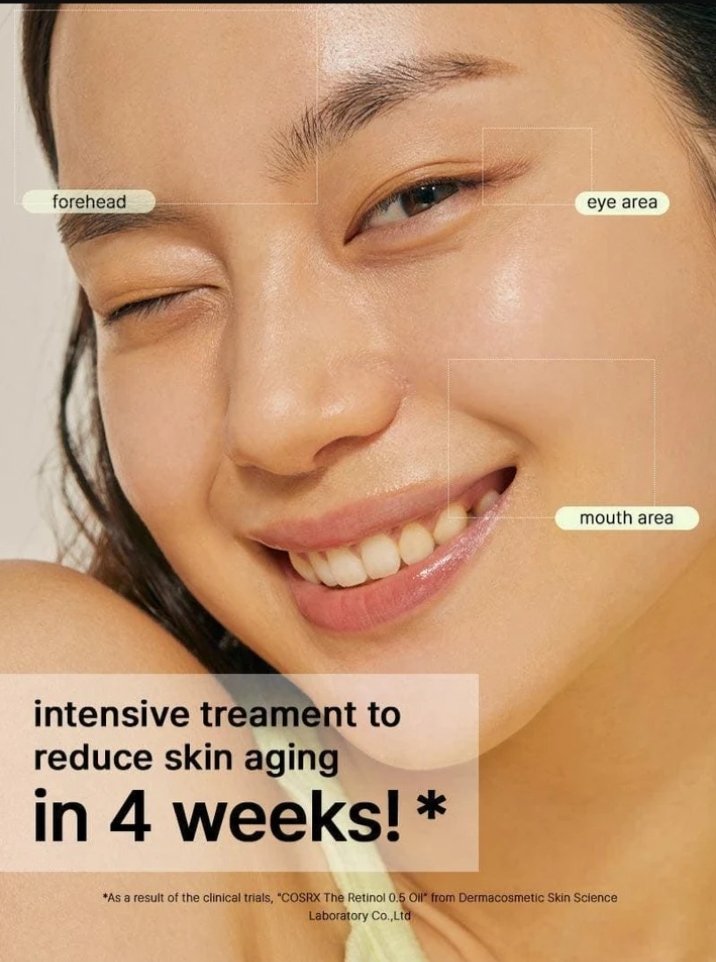 فتح الجلد الشباب مع COSRX زيت Retinol 0.5 ، صياغة الريتينول النقية بنسبة 0.5 ٪ مصممة لفوائد مضادة للشيخوخة المرئية.