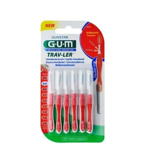 فرشاة الأسنان بين الأسنان القابلة لإعادة الاستخدام GUM Trav-Ler 6 - الحجم: 1314: 0.8 مم هي حل فعال لإزالة البلاك من المساحات بين الأسنان.