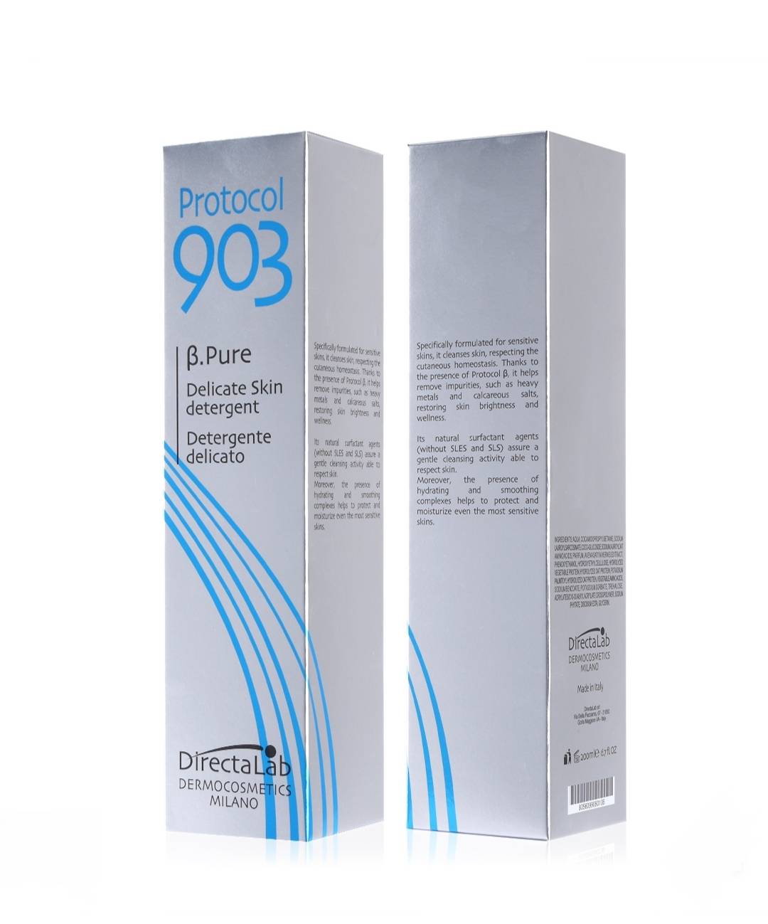 خضع بروتوكول 903 B.Pure لدراسة خاصة للبشرة الحساسة. تركيبته الخاصة تزيل الشوائب دون المساس بالتوازن الداخلي للبشرة، وتضمن تأثيرًا مخلبيًا ضد المعادن الثقيلة بفضل بروتوكول B، الحاصل على ترخيص DirectaLab.