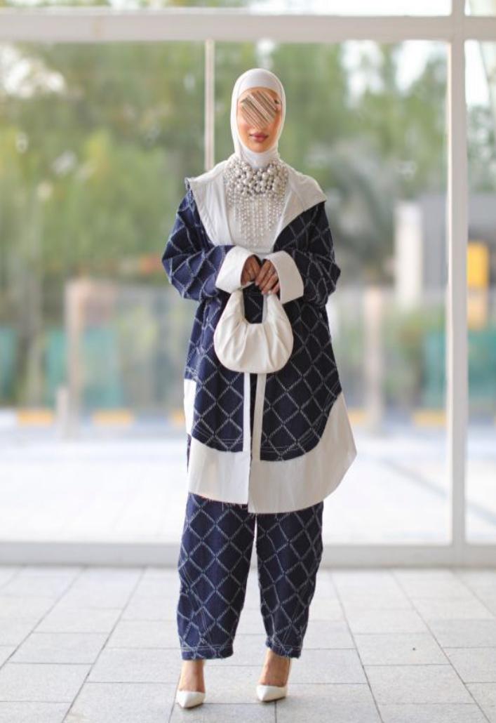 إطلالة جريئة وعصرية لمحبات التميز! اقتني هذه القطعة الفنية التي تجمع بين الأناقة والجرأة. طقم من قطعتين بتصميم فريد يجمع بين اللون الكحلي الداكن ونقوش مربعة بيضاء مميزة. يتميز الطقم ببلوزة واسعة ذات ياقة كبيرة بتفاصيل بيضاء أنيقة تضفي عليها لمسة درامية، بالإضافة إلى بنطلون فضفاض بنفس النقشة. يمكنك تنسيق هذا الطقم بسهولة مع إكسسوارات جذابة مثل قلادة اللؤلؤ الكبيرة وحقيبة اليد البيضاء لإكمال مظهرك الأنيق. مثالي للظهور بإطلالة لا تُنسى في المناسبات الخاصة.