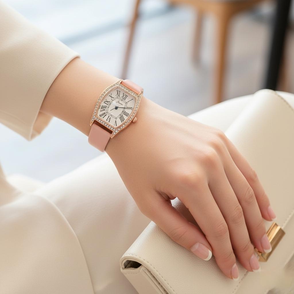 اجمعي بين الأناقة العتيقة (Vintage Elegance) والسحر الأنثوي مع هذه الساعة النسائية المتميزة. تصميمها مستوحى من الطراز الكلاسيكي مع لمسة عصرية من البريق، مما يجعلها قطعة فاخرة لا غنى عنها في خزانة إكسسواراتك.