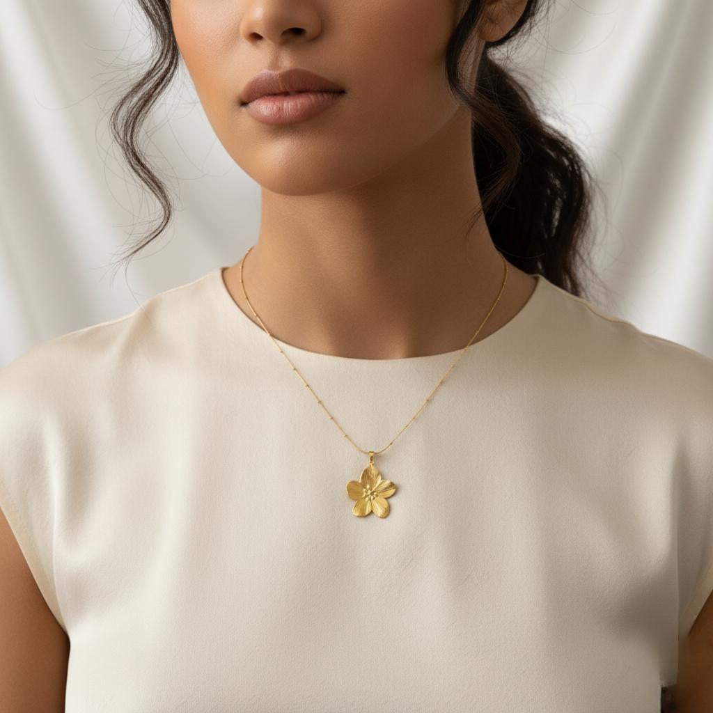 الخامة: قلاده زهره اللوتس من الفولاذ المقاوم للصدأ مطلي بالذهب عيار 18