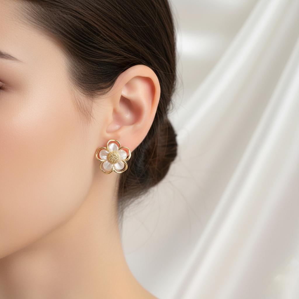 الخامة: اقراط زهرة كليب من الفولاذ المقاوم للصدأ واحجار الراين