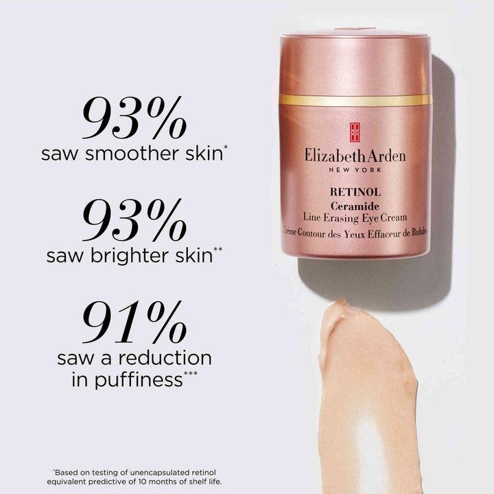 نتائج ذكية - يُساعد مزيج الريتينول والببتيدات والنياسيناميد على تنعيم وإشراق منطقة العين الحساسة، وإزالة الانتفاخات، والحفاظ على ترطيبها.