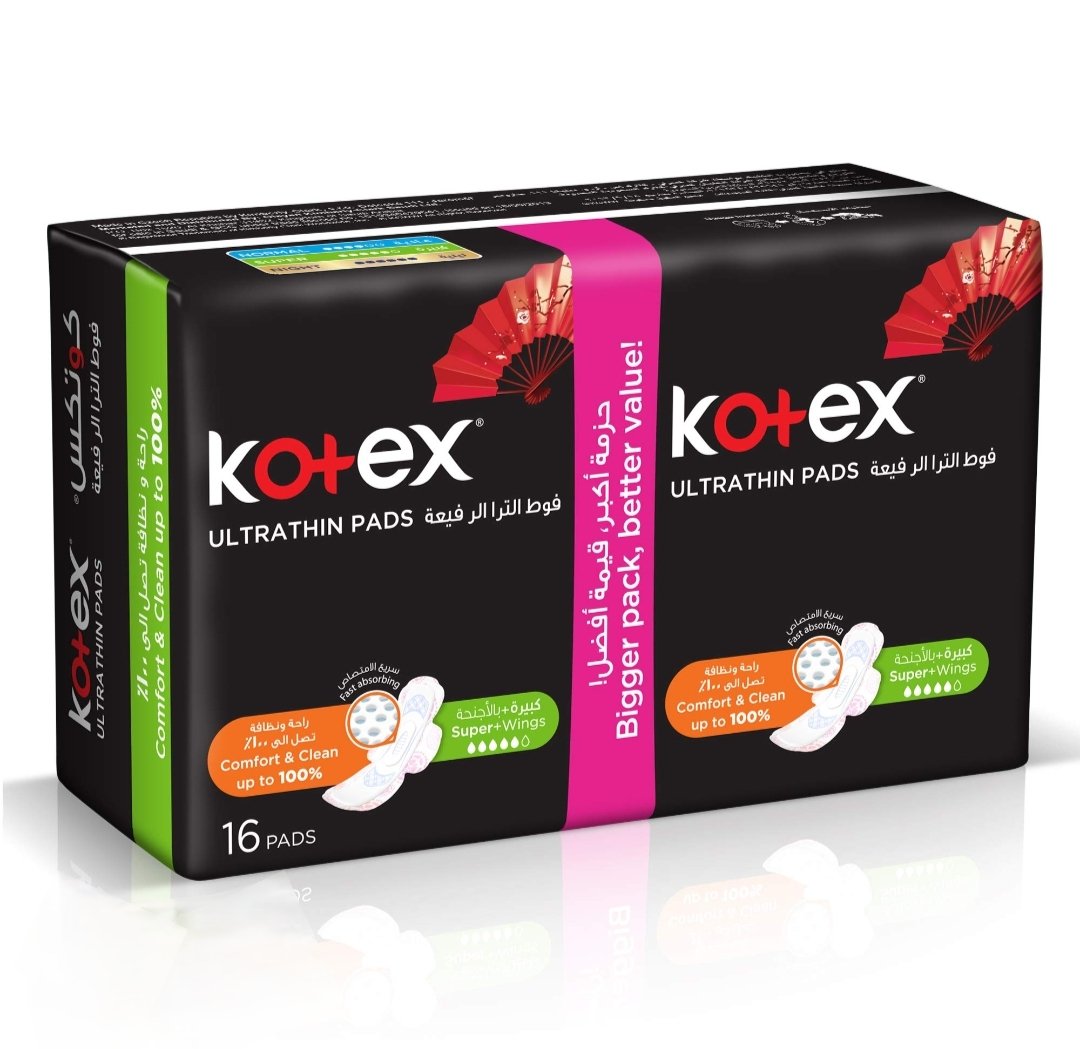 فوط كوتكس فائقة النحافة مع أجنحة، عبوة مزدوجة، 16